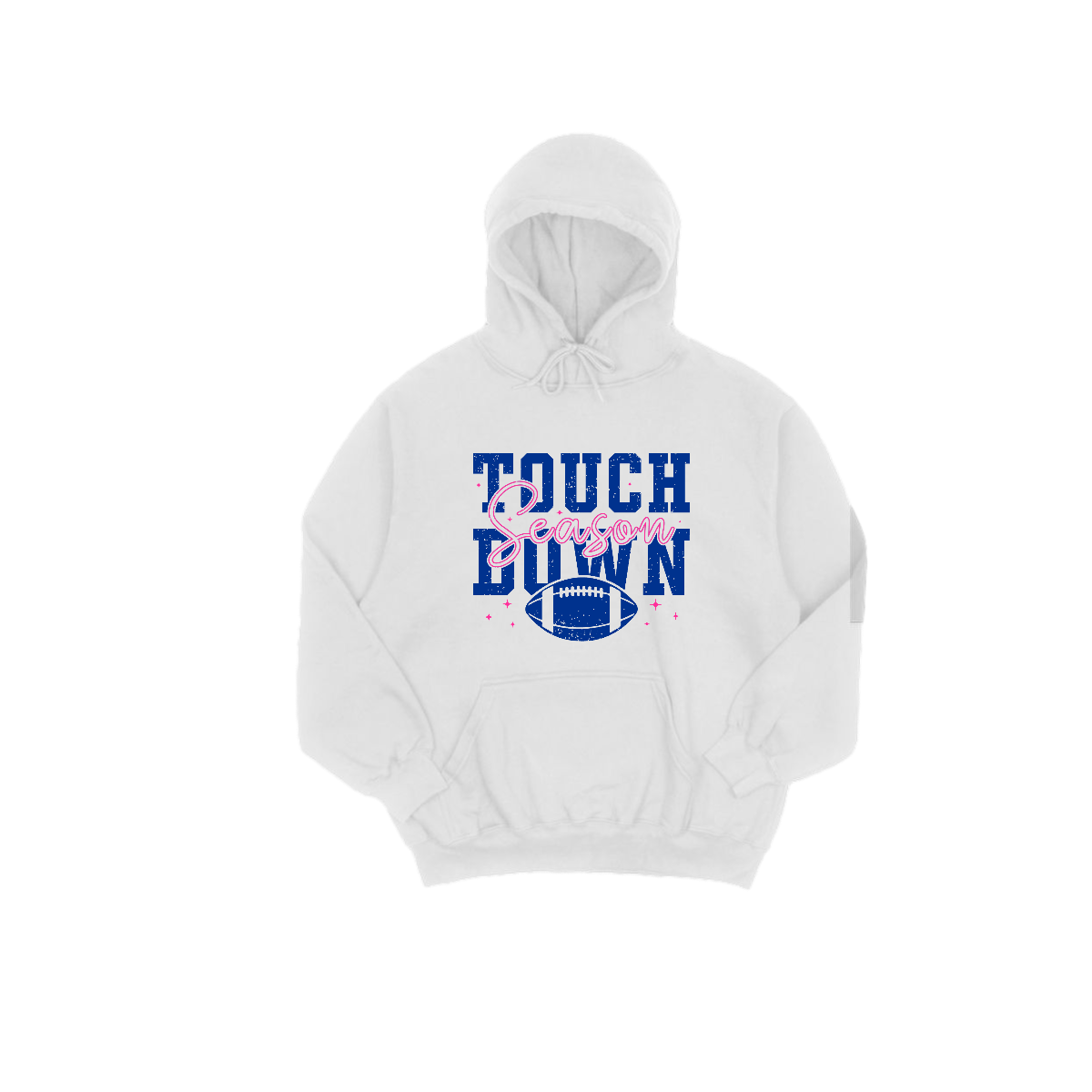 Made with a soft and durable blend of 50% cotton and 50% polyester, the Touch Down Season Hoodie is perfect for any season. Its pill resistant fleece ensures long-lasting quality, while the classic hoodie design provides both comfort and style. Stay warm and trendy with this must-have piece.